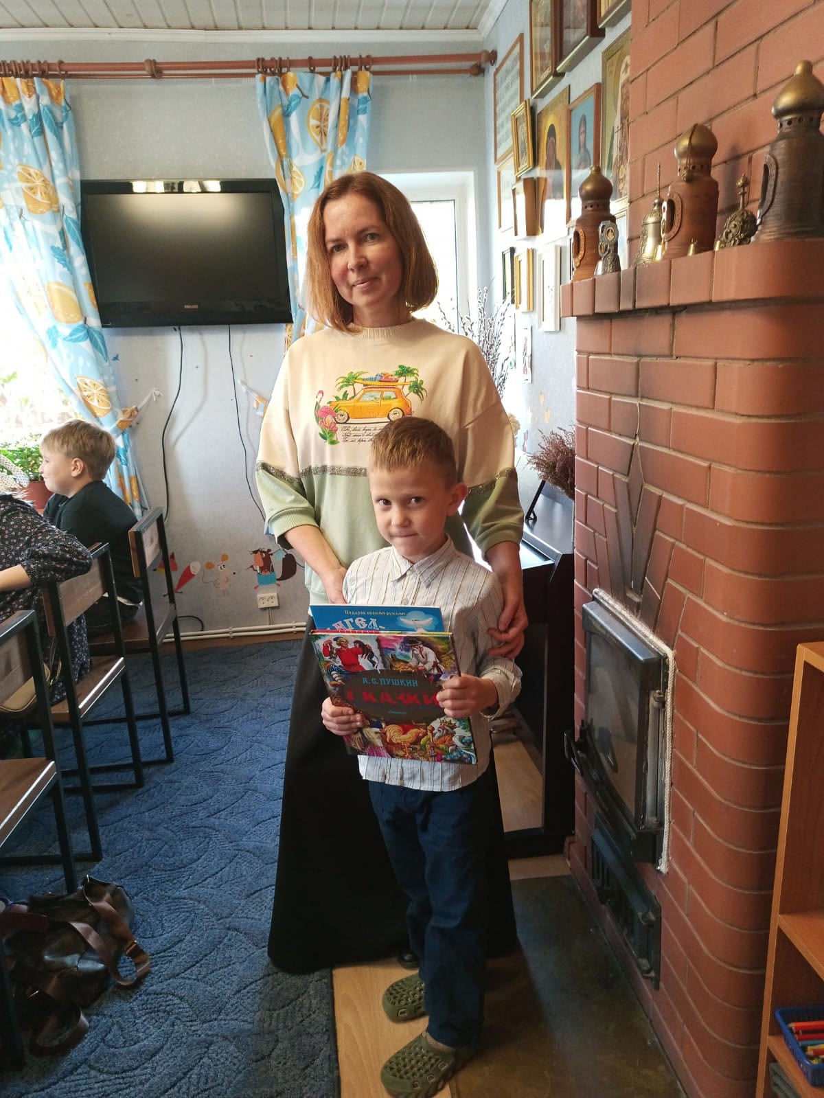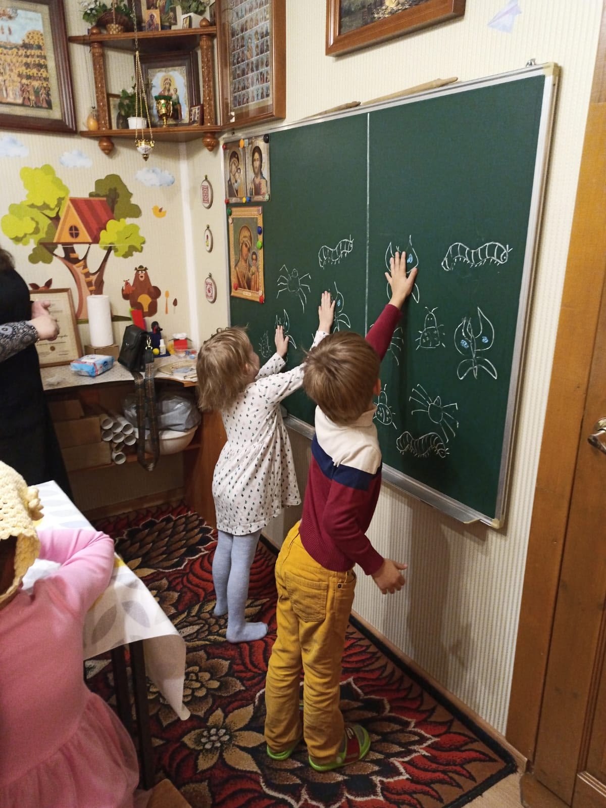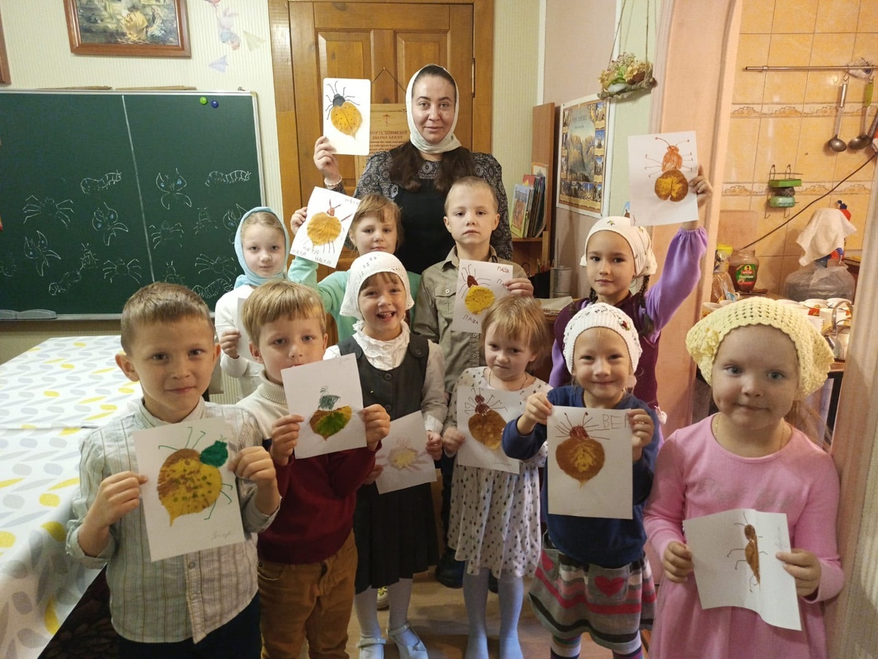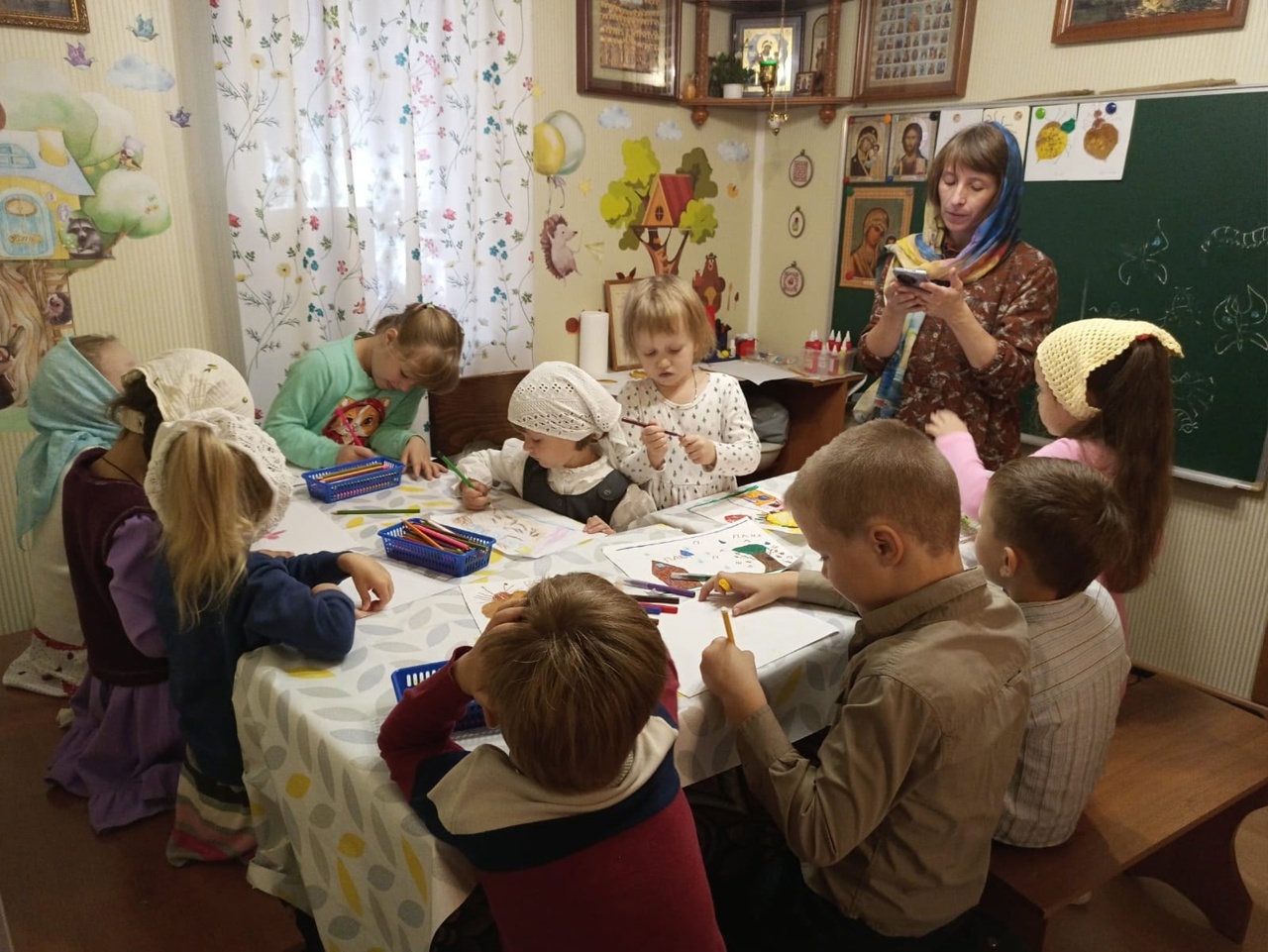 Сегодня на занятии в воскресной школе младшая группа и Полина Владиславовна продолжали беседовать о нашем огромном прекрасном мире и о его Создателе — Боге.