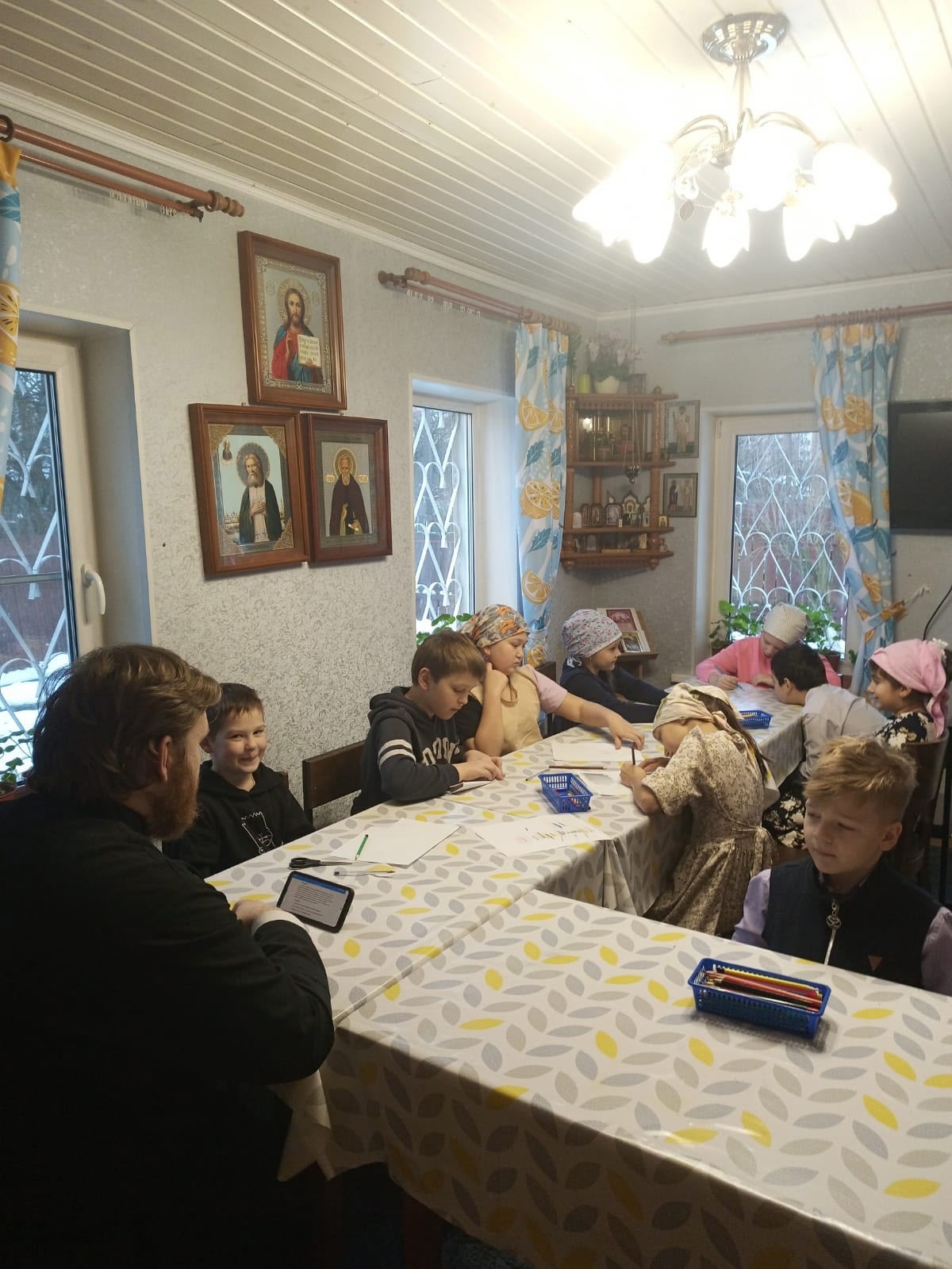 На занятии с Полиной Владиславовной младшая группа сегодня говорила об ангелах — невидимых духах, Божьих вестниках. За их способность мгновенно перемещаться, чтобы сообщить людям волю Божию, на иконах ангелов пишут крылатыми.